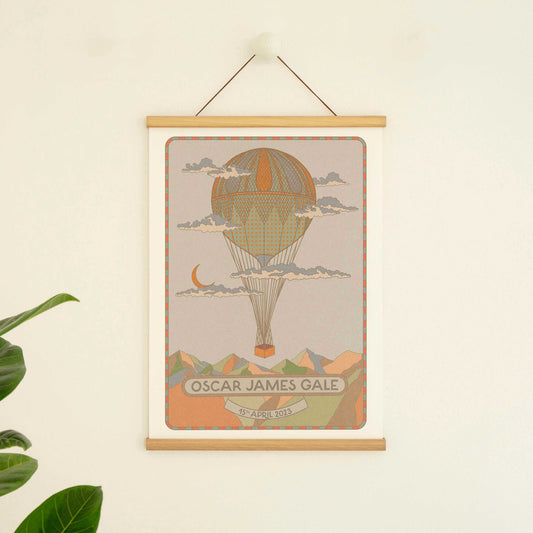 Personalised Art Print - New Baby Gift - Hot Air Balloon Illustration